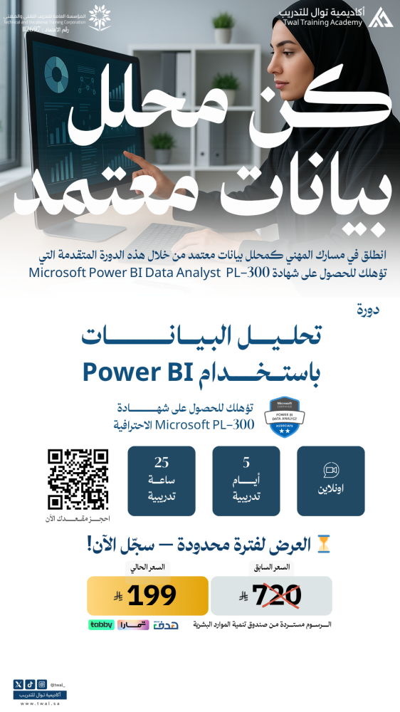انطلق في مسارك المهني كمحلل بيانات معتمد من خلال هذه الدورة المتقدمة التي تؤهلك للحصول على شهادة Microsoft Power BI Data Analyst – PL-300.